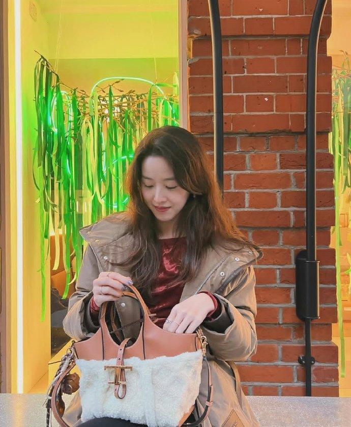 章泽天更新美照,发量惊人枣红色针织衫贵气,拎超个性包包很暖心