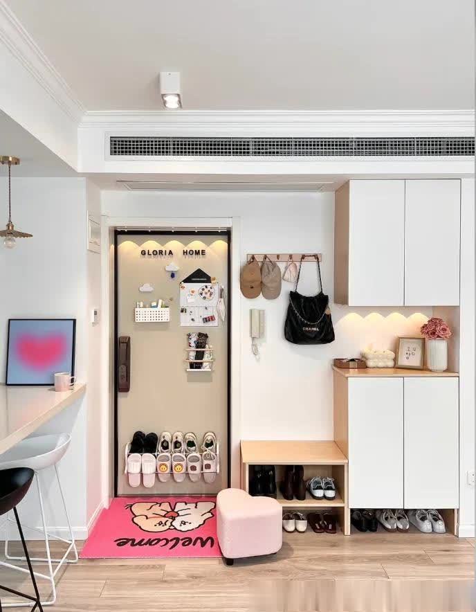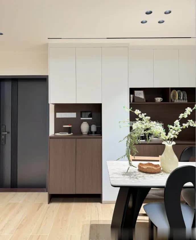 对于没有门厅且进门一览无余,又缺乏独立电梯间的户型而言,进门鞋柜的收纳问题着实让人头疼。若无法满足这一刚需,后续的诸多设想便都难以实现。所以,今天我们就来探讨一下这种进门一马平川户型中鞋柜的创意设计方法。