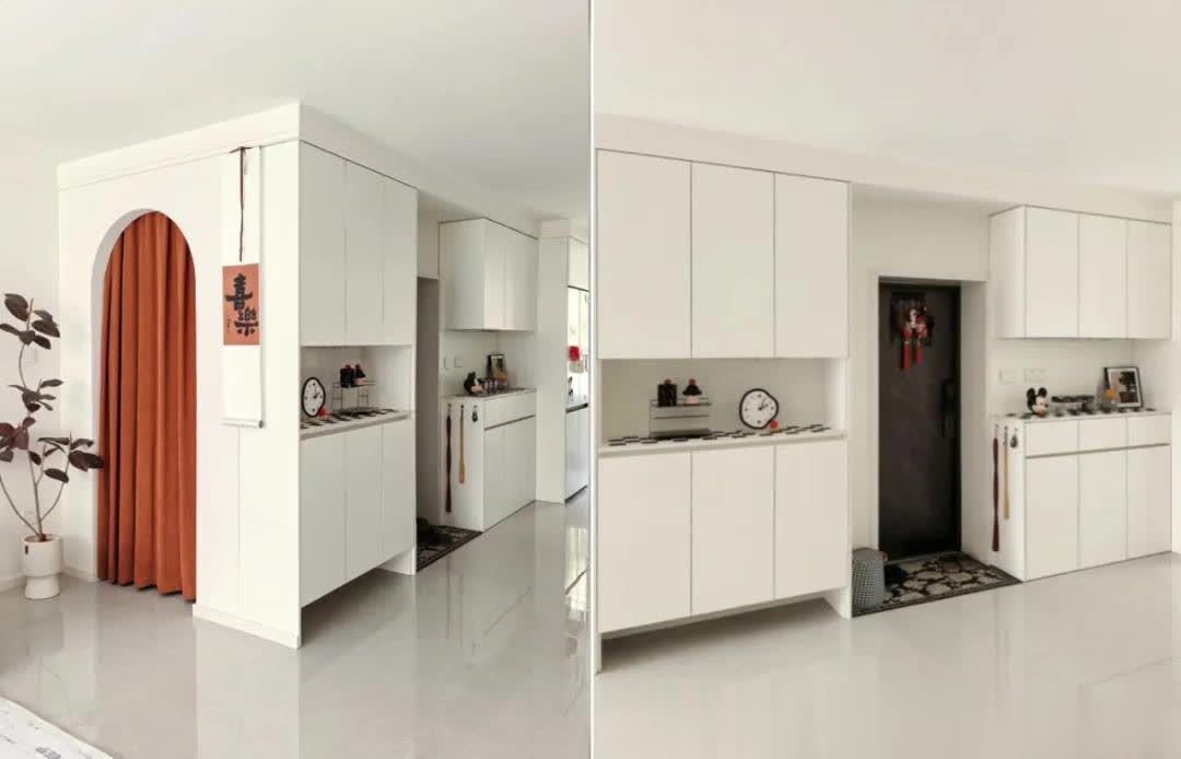 客餐厅一体的无玄关户型,终于有了清爽整洁的入户区域。